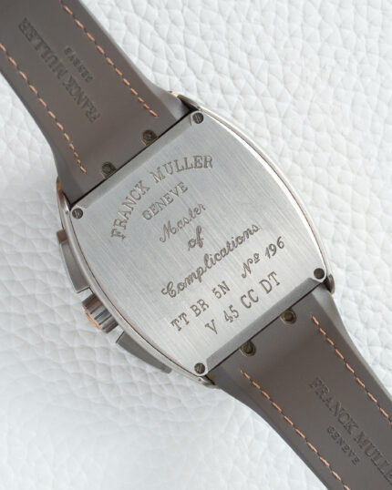 The Franck Muller Vanguard Chronograph Ref. V 45 CC DT with a striking gray dial is a commanding expression of modern horology, seamlessly merging