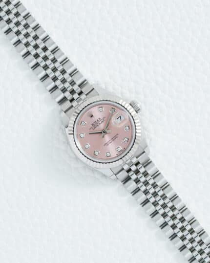 The Rolex Lady-Datejust 28mm 279174 with its enchanting pink diamond dial and stainless steel construction represents the pinnacle of feminine elegance and luxurious refinement, blending a
