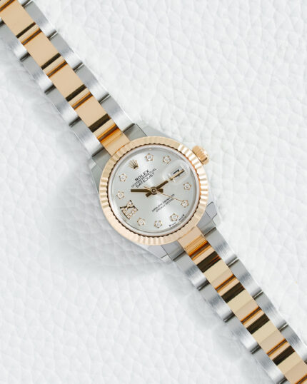 The Rolex Datejust 41 126331 with its striking silver motif dial and two-tone Everose gold and steel construction represents a modern masterpiece of texture and light,