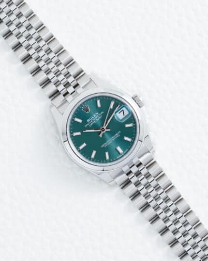 The Rolex Datejust 31 Ref. 278240 with its striking green dial, smooth bezel, and iconic Jubilee bracelet is a masterful expression of contemporary elegance, blending a