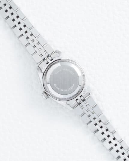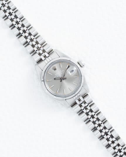 The Rolex Oyster Perpetual Lady Date 6919 with its sophisticated rhodium dial and iconic Jubilee bracelet is a rare and distinguished vintage timepiece, offering a unique