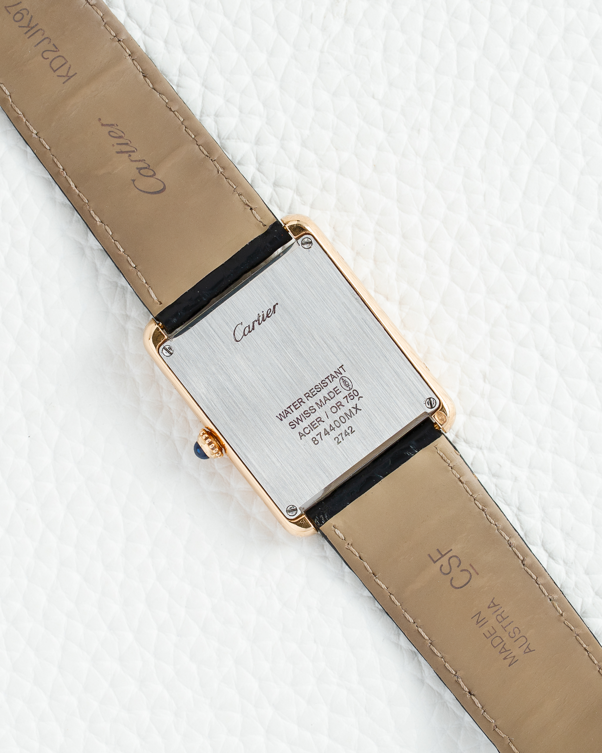 The Cartier Tank Solo W1018855 with its pristine white dial and diamond-set bezel is the epitome of refined elegance and Art Deco sophistication, blending the iconic rectangular design with exquisite gem-setting in a timepiece that honors Cartier’s century-long legacy of watchmaking excellence. This exquisite model features a stainless steel case with a bezel meticulously set with brilliant-cut diamonds that create a continuous frame of sparkle, perfectly contrasting with the crisp white dial that provides a minimalist backdrop for the Roman numeral hour markers and blue steel sword-shaped hands (a Cartier signature). The railroad minute track adds a touch of vintage inspiration and enhanced readability, while the sapphire cabochon crown set in a blue sapphire provides the brand’s signature finishing touch. Powered by a high-precision quartz movement, this watch delivers exceptional accuracy and reliability with minimal maintenance required, making it an ideal choice for daily wear. The black alligator leather strap with contrasting white stitching and a stainless steel deployant buckle ensures both comfort and security, completing the watch’s classic and sophisticated profile. Every detail reflects Cartier’s uncompromising attention to craftsmanship, from the scratch-resistant sapphire crystal to the perfectly aligned diamond setting where each stone is carefully selected for optimal brilliance, and the polished and brushed case finishes that highlight the Tank’s geometric purity. The W1018855 represents the perfect harmony of iconic design and luxurious embellishment, offering a watch that transitions seamlessly from daytime professionalism to evening glamour. With its breathtaking combination of diamond brilliance, classic white dial, and legendary Tank silhouette, this Tank Solo stands as a testament to Cartier’s ability to create timepieces that are both artistically magnificent and effortlessly wearable – a true collector’s piece for the discerning individual who appreciates the finest blend of historical design, precious gem-setting, and Swiss precision, making it an ideal heirloom that captures light and attention with its understated yet radiant beauty and impeccable craftsmanship.