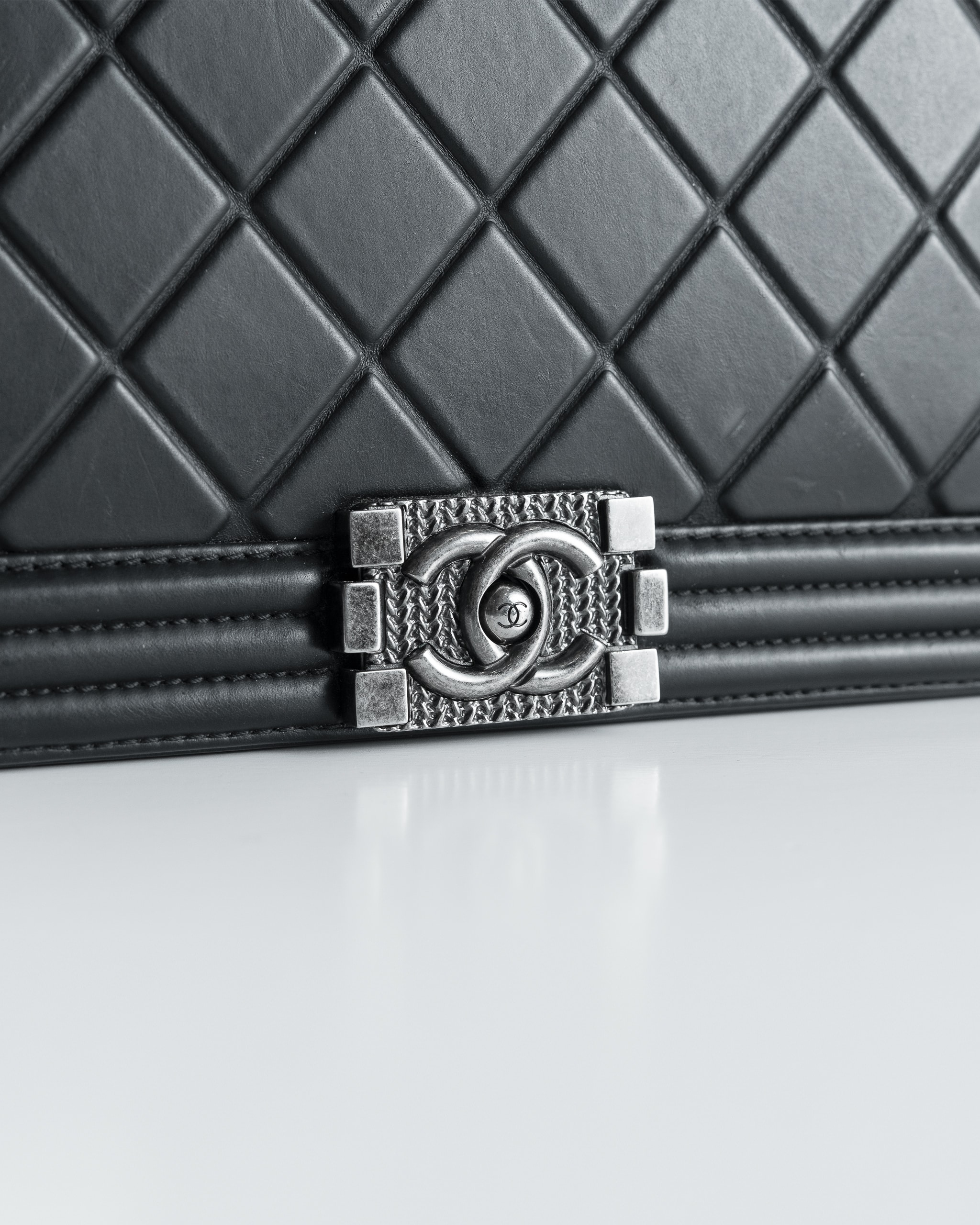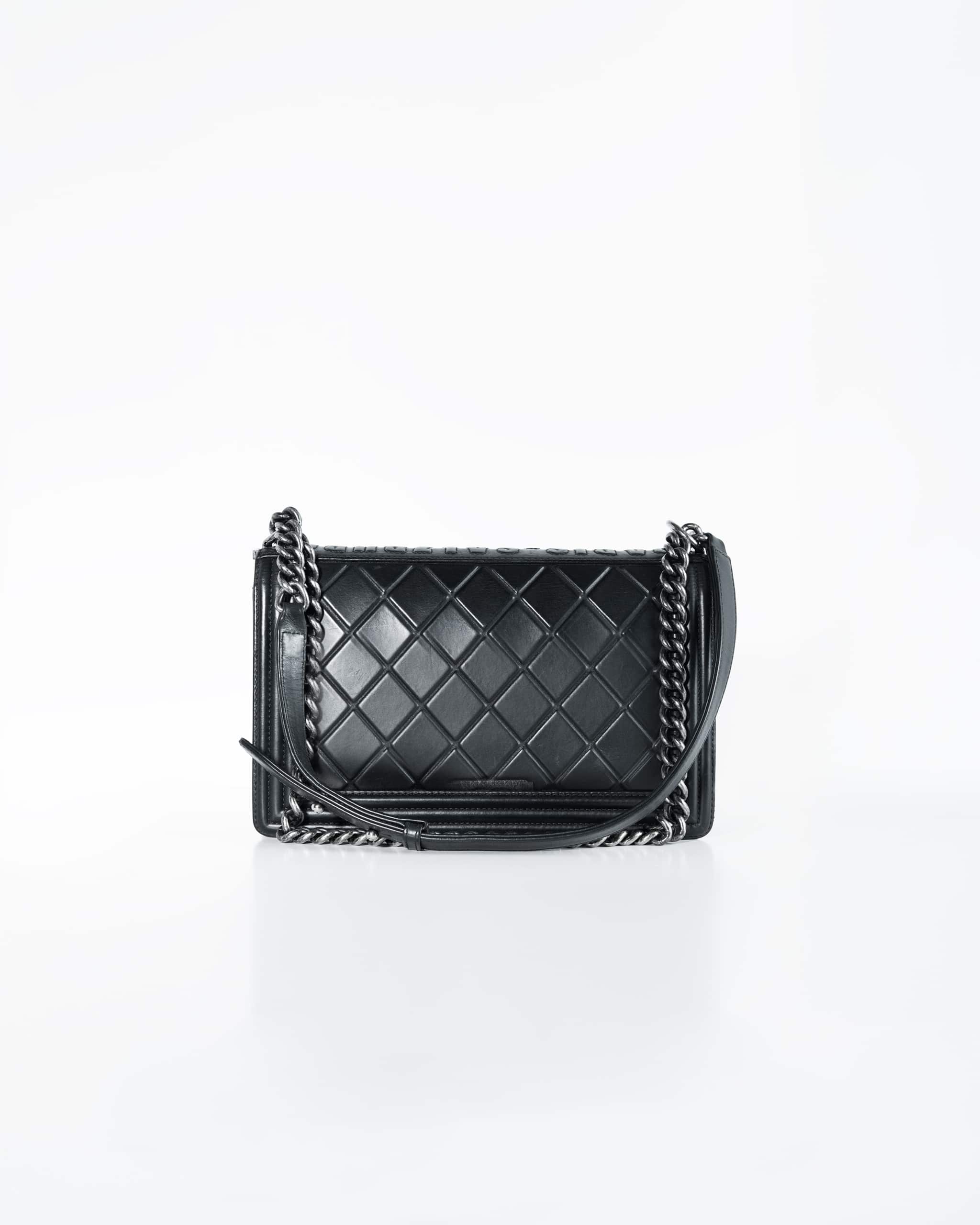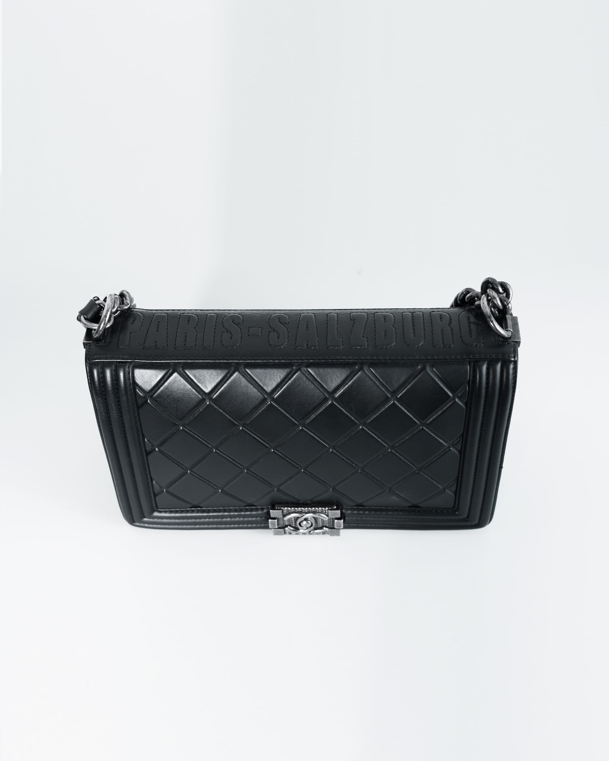 Chanel Boy Calfskin Embossed Medium Paris Salzburg Black