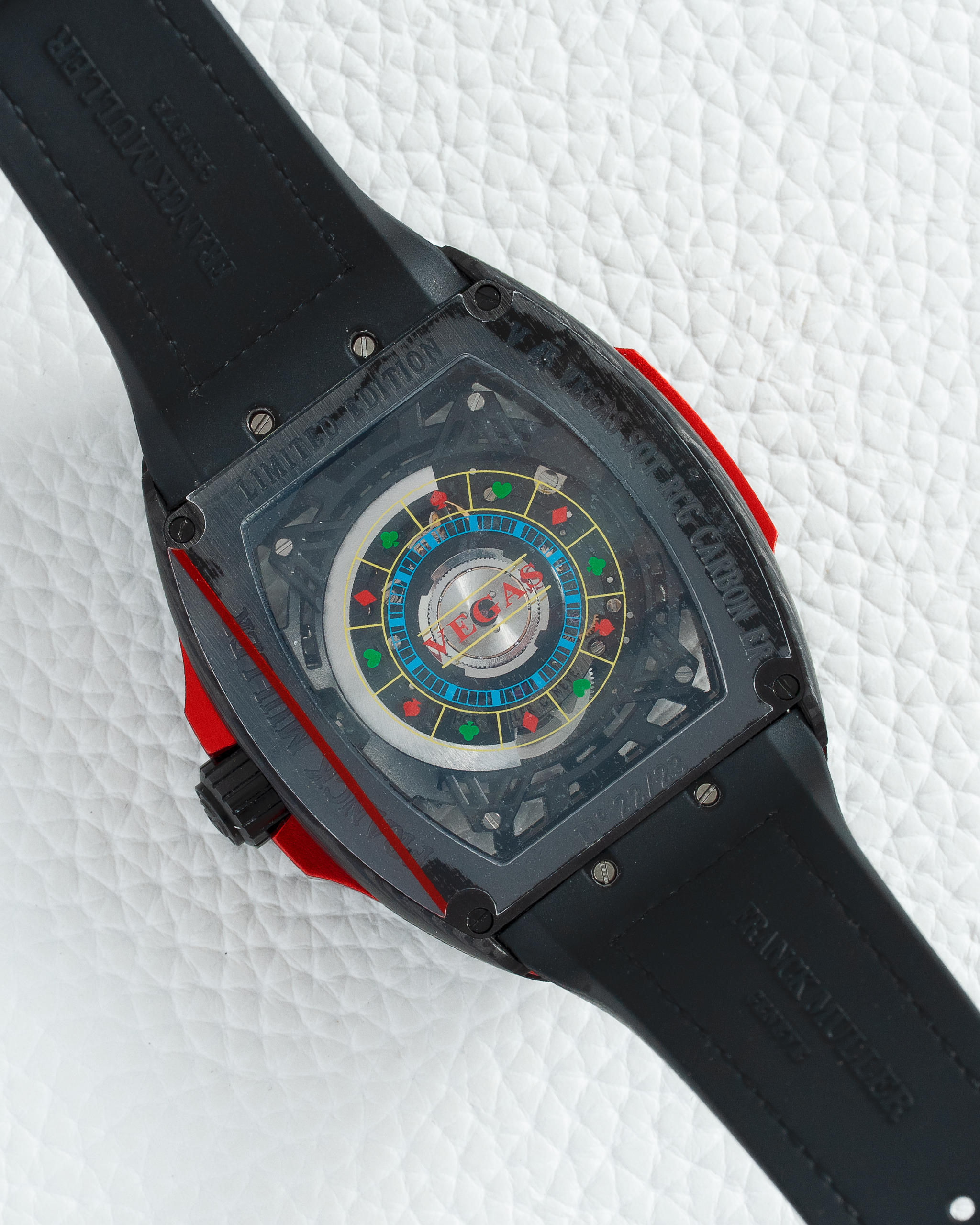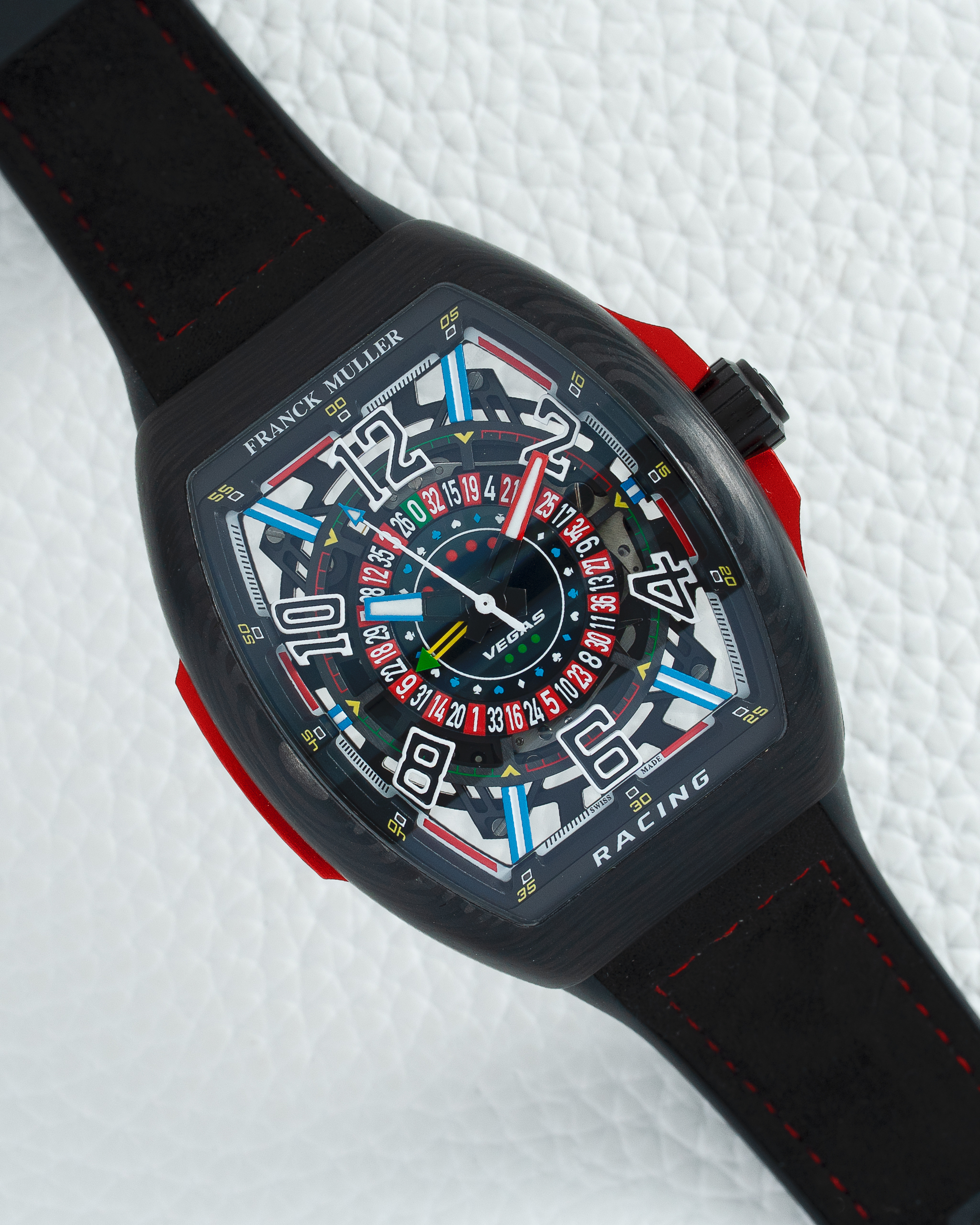 TheĀ Franck Muller Carbon Racing Vegas Collection, created in celebration of the 2023 Las Vegas Grand Prix, is a bold fusion of haute horlogerie, cutting-edge materials, and the electrifying spirit of Sin City, resulting in a timepiece that is as technologically advanced as it is visually captivating. This exclusive model features aĀ revolutionary case sculpted from 150 layers of compressed carbon fiber, a material revered in aerospace and motorsport for its exceptional strength-to-weight ratio, offering unparalleled durability and a featherlight feel on the wrist, with each case requiring an extremely complex and delicate machining process that underscores Franck Muller’s pioneering vision. The dial is a dynamic tribute to Las Vegas, featuringĀ vibrant colors directly inspired by the iconic “Welcome to Fabulous Las Vegas” sign, while the centerpiece is aĀ functional roulette wheelĀ withĀ spinning handsĀ that add an element of playful animation and chance, perfectly capturing the city’s legendary casino energy. This high-complication display is housed within Franck Muller’s signatureĀ CintrĆ©e Curvex case shape, masterfully reinterpreted in modern carbon, and protected by aĀ sapphire crystalĀ that offers a clear view of the intricate mechanics. The watch is powered by aĀ sophisticated automatic movement, meticulously finished and engineered to drive both the timekeeping functions and the engaging roulette complication. Paired with aĀ technical rubber strapĀ orĀ integrated carbon braceletĀ for enhanced sportive aesthetics, this timepiece is designed for maximum comfort and impact. Every detail, from theĀ luminescent indexesĀ to theĀ precision of the spinning roulette, reflects Franck Muller’s unwavering commitment to innovation, luxury, and theatrical design. This Carbon Racing Vegas piece is more than a watch; it is a wearable souvenir of a monumental sporting event and a testament to boundary-pushing craftsmanship, designed for the collector who seeks a conversation piece that embodies the thrill of racing, the glamour of Vegas, and the avant-garde spirit of Franck Muller.