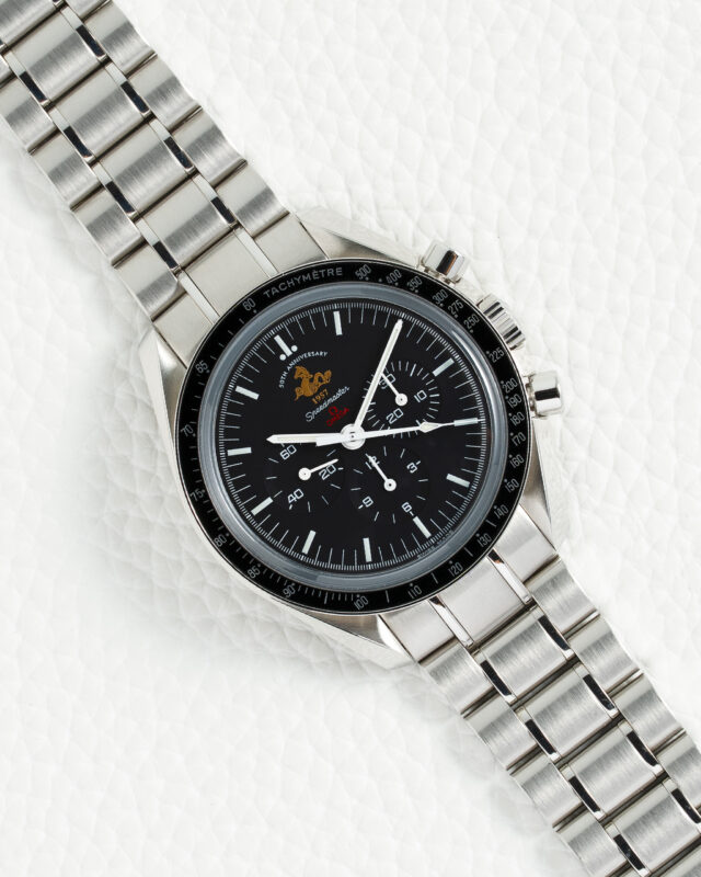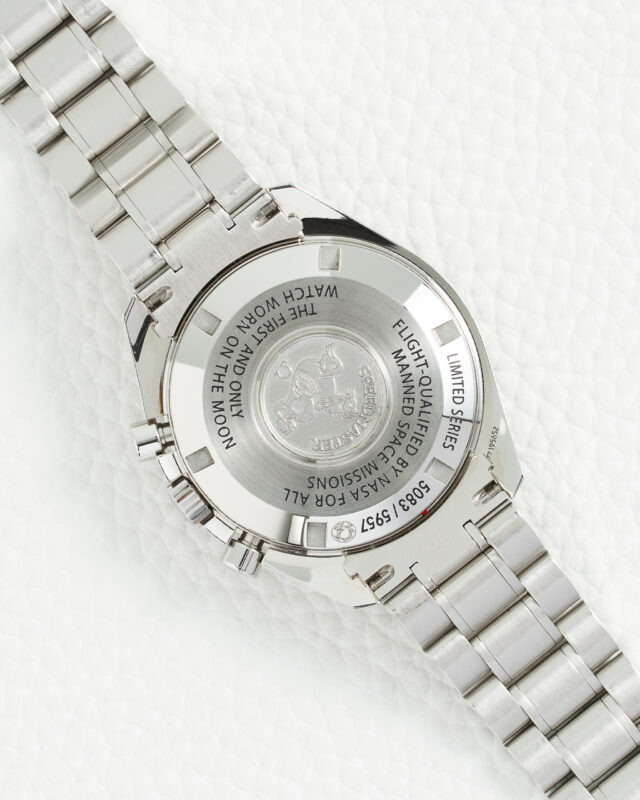 The Omega Speedmaster Professional Moonwatch 310.30.42.50.01.002 is a horological icon that celebrates Omega’s legacy in space exploration, featuring a 42mm stainless steel case with the signature asymmetrical design that has made it one of the most recognizable chronographs in history. This legendary timepiece boasts a black step dial with applied hour markers and the classic tri-compax layout, including a small seconds sub-dial at 9 o’clock, 30-minute recorder at 3 o’clock, and 12-hour recorder at 6 o’clock, all powered by the manual-winding Caliber 3861. This Master Chronometer-certified movement delivers exceptional precision with resistance to magnetic fields up to 15,000 gauss and a 50-hour power reserve, visible through the sapphire crystal caseback that showcases the movement’s exquisite finishing with Geneva waves decoration. The black ceramic bezel features a white enamel tachymeter scale for precise speed calculations, while the sapphire crystal (with anti-reflective treatment on both sides) offers enhanced scratch resistance and clarity compared to traditional Hesalite. The stainless steel bracelet with flat-link design and folding clasp provides both comfort and durability, maintaining the watch’s authentic 1960s aesthetic. Water-resistant to 50 meters, this Moonwatch retains its professional tool-watch functionality while offering modern refinements. As the only watch certified by NASA for all manned space missions and the first worn on the moon, this Speedmaster represents a pinnacle of human achievement and Omega’s pioneering spirit in watchmaking. Whether worn as a tribute to space exploration, a precision timing instrument, or a statement of horological passion, this watch stands as a testament to Omega’s commitment to excellence. With its perfect 42mm proportions, historical significance, and blend of vintage design with modern technology, the Speedmaster Professional Sapphire Sandwich is destined to be cherished by collectors and enthusiasts as both a functional chronograph and a piece of wearable history.