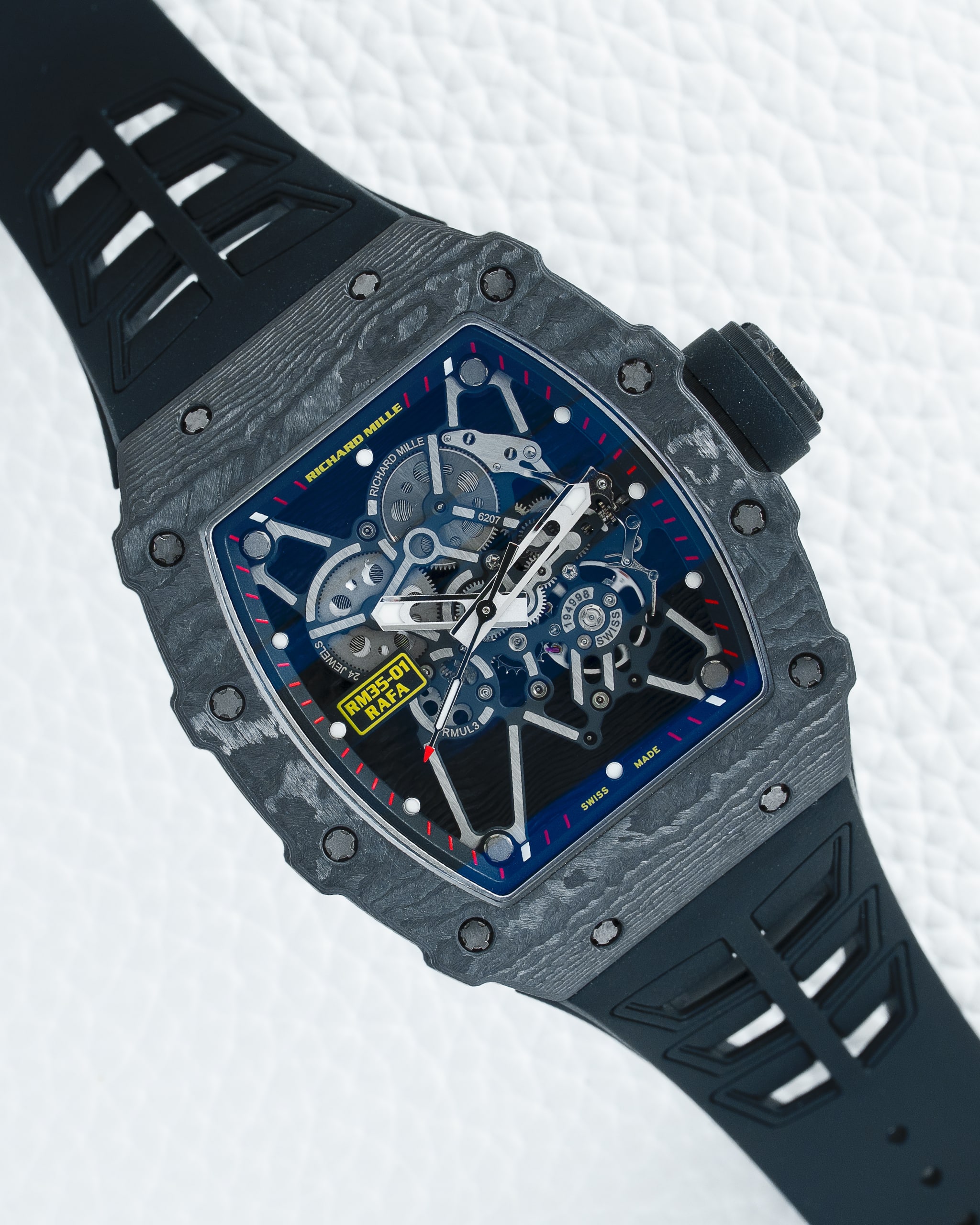 Only Richard Mille’s unique expertise in the machining of new materials and innovative design characteristics allows such a lightweight yet incredibly robust creation to exist. Completed with a comfortable black Velcro strap designed for a secure, customized fit, the RM 35-01 Rafael Nadal is not just a timepiece; it is aย featherweight powerhouse of technical innovation, a testament to human achievement, and a unique work of art for the discerning collector who demands the absolute pinnacle of modern watchmaking .