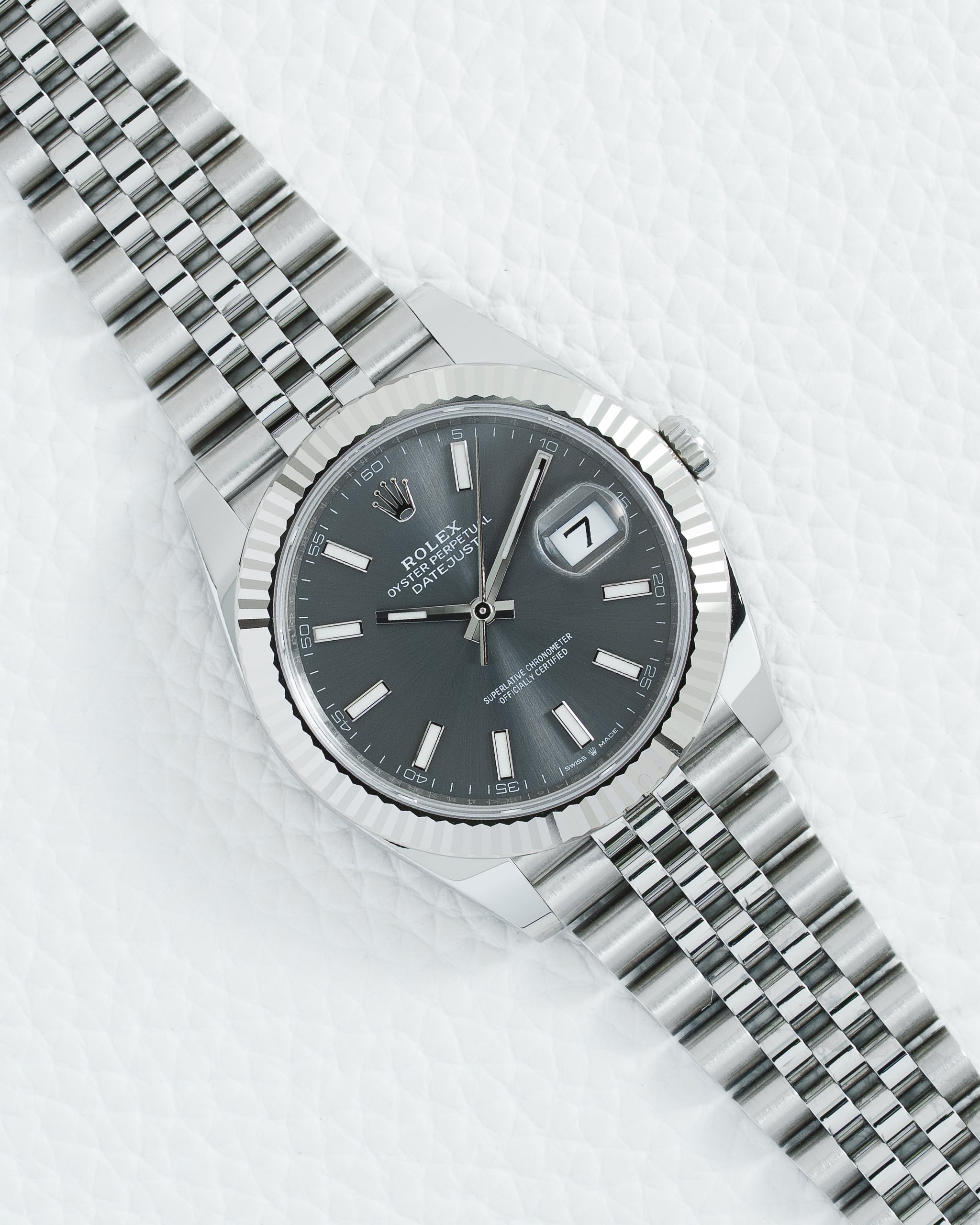 The Rolex Datejust 41 reference 126334 represents the pinnacle of iconic watchmaking, seamlessly blending timeless design with contemporary luxury to create a timepiece of unparalleled prestige for the discerning collector. This distinguished model features a commanding 41mm Oystersteel case, celebrated for its exceptional durability and brilliant finish, crowned by an iconic fluted bezel crafted from 18k white gold, a signature Rolex element that catches the light with a dazzling sparkle and signifies the watch’s inherent value. The mesmerizing Rhodium dial serves as a sophisticated, sun-brushed canvas for the brilliant diamond hour markers, each meticulously selected and set by hand to ensure maximum brilliance and perfect alignment, offering a stunning contrast that guarantees legibility and glamour in equal measure, further enhanced by the long-lasting Chromalight display. Embracing the wrist with legendary comfort and style is the iconic five-piece link Jubilee bracelet, a design originally conceived for the Datejust itself, masterfully crafted in Oystersteel to provide a supple, refined fit that is both instantly recognizable and exceptionally comfortable for daily wear. Powering this horological masterpiece is the superlative Rolex Caliber 3235, a self-winding mechanical movement entirely developed and manufactured in-house, featuring the patented Chronergy escapement for superior efficiency and offering an impressive 70-hour power reserve, all certified as a Superlative Chronometer for precision that far exceeds industry standards. The classic Cyclops lens at 3 o’clock magnifies the instantly recognizable date display, a hallmark of functionality that completes the watch’s perfectly balanced and symmetrical aesthetic. As a cornerstone offering in any luxury retail environment, this Datejust 41 is more than an instrument of time; it is a universally recognized symbol of success, a versatile heirloom that transitions effortlessly from formal occasions to everyday distinction, embodying the enduring innovation, peerless craftsmanship, and timeless elegance that have solidified Rolex’s unassailable position at the forefront of Swiss watchmaking for generations.