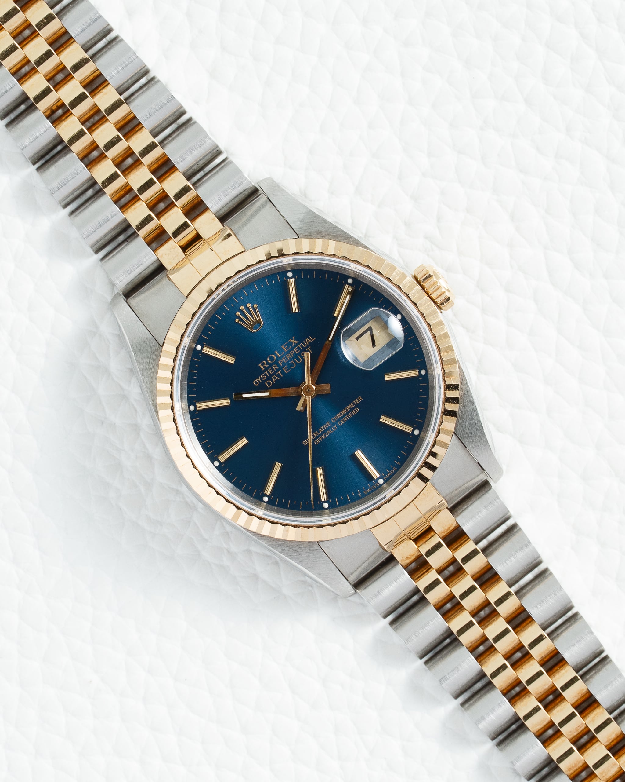 Rolex Datejust 16233 Two-Tone Yellow Gold/Steel Jubilee Bracelet Yellow Gold Fluted Bezel Blue Dial 36mm