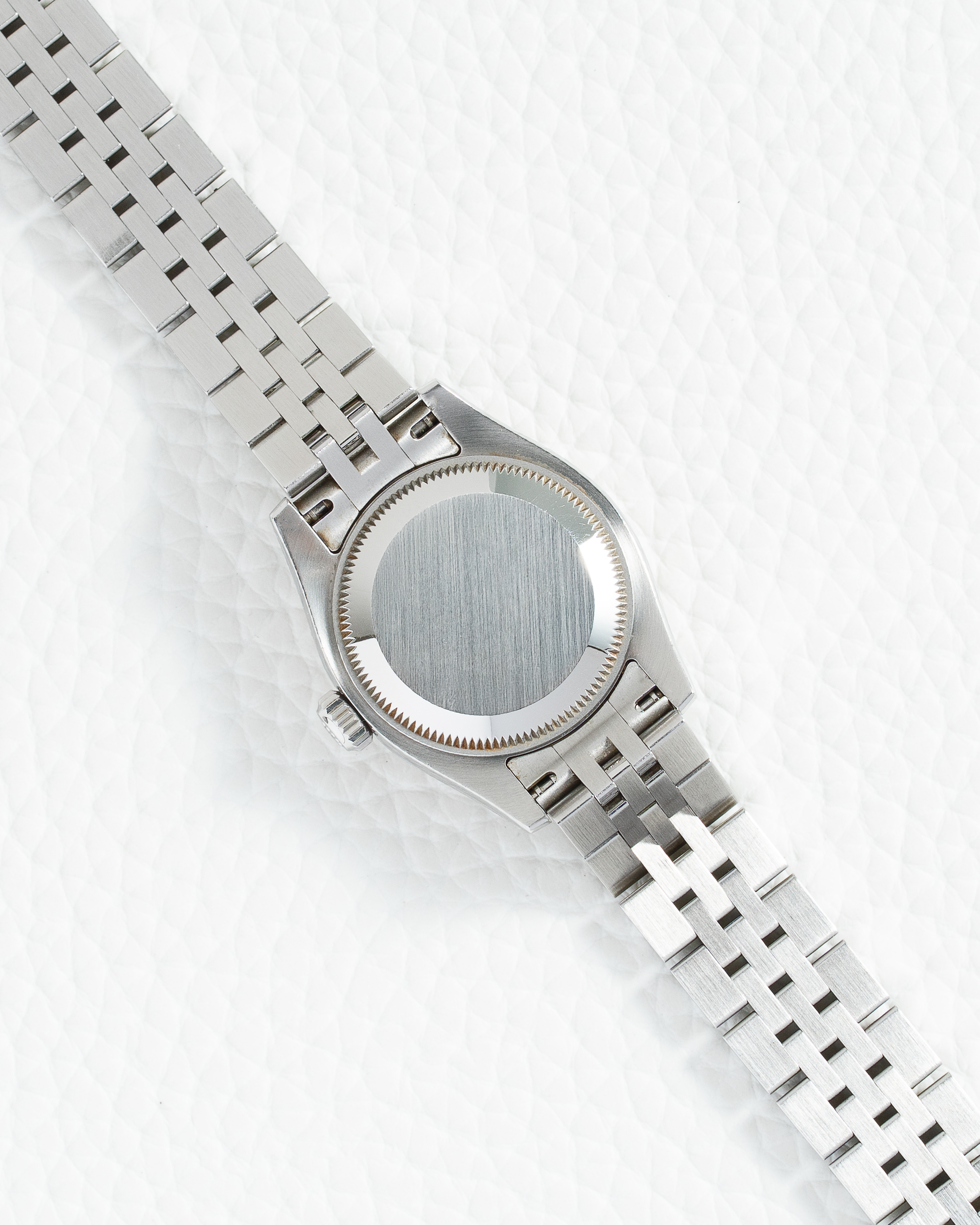 The Rolex Datejust 179174 with its classic silver dial and stainless steel construction represents the quintessential expression of timeless elegance and Rolex’s unwavering commitment to excellence, housed in a refined 26mm case that has become the benchmark for feminine luxury watch design. This exquisite timepiece features a solid Oystersteel case complemented by an 18k white gold fluted bezel that catches the light with every movement, creating a dazzling effect against the silver sunburst dial that offers a dynamic play of light ranging from soft pearl to bright metallic depending on the angle. The applied white gold hour markers and luminous hands ensure exceptional legibility in any lighting, while the date window at 3 o’clock features the signature Cyclops magnification lens that has become a Rolex hallmark. Powered by the Caliber 2235, a self-winding movement with Syloxi hairspring and 48-hour power reserve, this watch is certified as a Superlative Chronometer for outstanding accuracy and reliability. The five-piece link Jubilee bracelet with its semi-concealed Crownclasp offers unparalleled comfort and a seamless aesthetic flow from case to wrist, embodying the perfect balance of formal elegance and everyday wearability. Every detail reflects Rolex’s meticulous craftsmanship, from the scratch-resistant sapphire crystal to the hermetically sealed Oyster case that provides 100-meter water resistance. The 179174 captures the essence of Datejust design while maintaining the sophistication and quality that have made this model an enduring symbol of refined taste. Its combination of precious materials, iconic design elements, and mechanical reliability makes this silver dial Datejust an exceptional choice for those seeking a timepiece that blends traditional elegance with proven performance—a watch that transcends trends while maintaining the sophistication and quality that have made Rolex the world’s most recognized luxury watch brand. This particular configuration with its silver dial and Jubilee bracelet represents one of the most versatile and classic variations, offering timeless appeal that continues to captivate enthusiasts seeking understated luxury with impeccable pedigree.