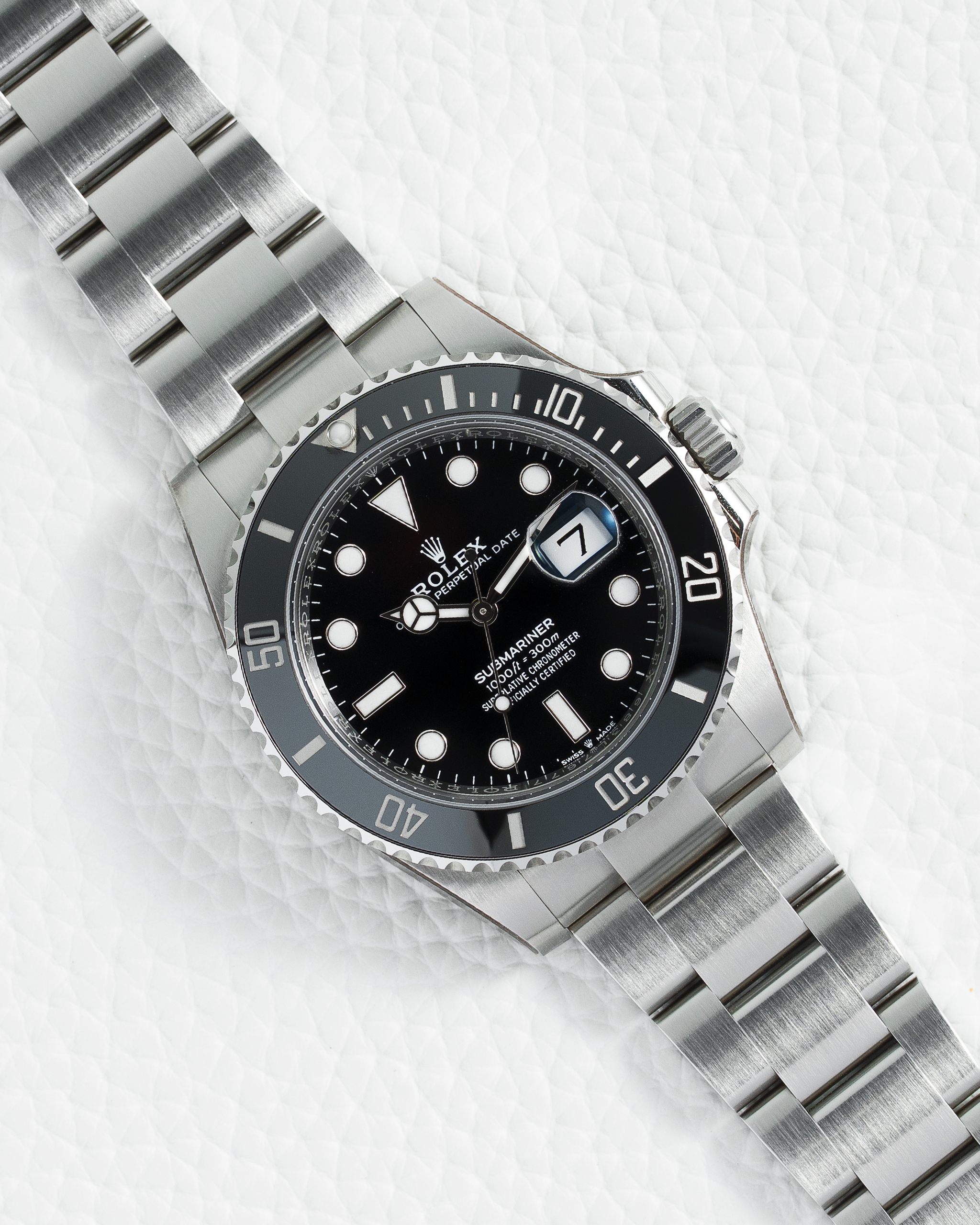 The Rolex Submariner Ref. 126610LN in 41mm Oystersteel with black dial and black Cerachrom bezel represents the ultimate evolution of the world’s most iconic dive watch, featuring a slightly enlarged case that maintains the collection’s classic proportions while offering improved wrist presence, housing a deep black dial with larger luminescent hour markers and Chromalight hands for exceptional visibility in any underwater environment. Powered by Rolex’s next-generation Caliber 3235, this COSC-certified Superlative Chronometer movement delivers unprecedented 70-hour power reserve, ±2 seconds/day accuracy, and the innovative Chronergy escapement for enhanced efficiency, all protected by 300-meter water resistance and a screw-down Triplock crown. The black Cerachrom ceramic bezel with platinum-filled numerals offers flawless scratch resistance and fade-proof color, while the Oyster bracelet features redesigned wider lugs and glidelock clasp for perfect fit adjustment over a wetsuit. Every detail reflects Rolex’s relentless pursuit of perfection, from the polished center links that catch the light to the anti-reflective sapphire crystal that ensures clarity in all conditions. Presented in Rolex’s signature green packaging, this Submariner maintains all the professional diving capabilities that made the original 1953 model legendary while incorporating modern advancements that make it equally suited for boardroom or ocean depths. Key specifications: 41mm Oystersteel case; black dial; black Cerachrom bezel; Caliber 3235 automatic movement; 70-hour power reserve; Oyster bracelet with glidelock; 300m water resistance; sapphire crystal.