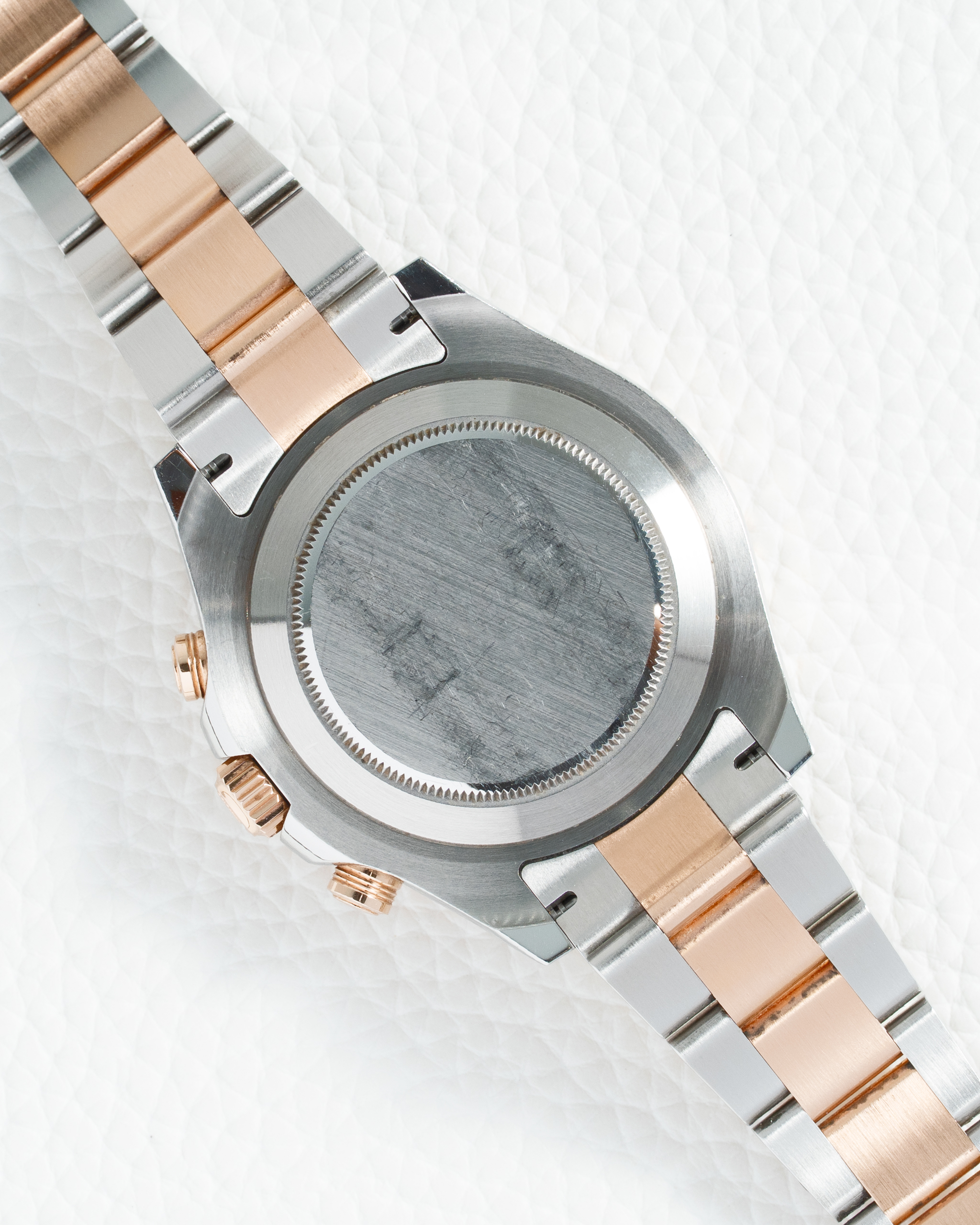 The Rolex Yacht-Master II 116681 with its striking white dial and two-tone Everose gold and steel construction represents the pinnacle of nautical chronograph innovation, blending advanced regatta timing functionality with luxurious aesthetics in a 44mm timepiece designed for competitive sailors and luxury watch enthusiasts. This technical masterpiece features a stainless steel case complemented by 18k Everose gold crown guards and pushers, creating a warm, sophisticated contrast against the brilliant white dial that provides optimal legibility with its oversized Chromalight hour markers and hands that emit a long-lasting blue glow in low-light conditions. The innovative blue Cerachrom bezel features Rolex’s Ring Command bezel system that allows intuitive programming of the countdown timer through rotational and pressing actions, while the red accent on the regatta timer hand adds sporty contrast to the clean design. Powered by the Caliber 4161, a self-winding movement with Paramagnetic blue Parachrom hairspring and 72-hour power reserve, this watch is certified as a Superlative Chronometer for outstanding accuracy and features a programmable countdown timer with mechanical memory and fly-back function for precise race start sequencing. The Oyster bracelet masterfully combines stainless steel links with 18k Everose gold center links, secured by an Oysterlock folding clasp with Glidelock extension system for quick adjustments over sailing gear. Every detail reflects Rolex’s commitment to professional sailing, from the scratch-resistant sapphire crystal to the hermetically sealed Oyster case providing 100-meter water resistance. The 116681 represents the ultimate fusion of nautical engineering and luxury watchmaking, offering a timepiece that transitions seamlessly from competitive regattas to sophisticated yacht club gatherings. With its combination of technical innovation, precious materials, and iconic design, this Yacht-Master II stands as a testament to Rolex’s ability to create instruments that excel in both performance and presence – a true sailor’s watch that embodies the spirit of maritime adventure while maintaining the luxury and reliability that define the Rolex name, making it the ultimate choice for those who demand both professional functionality and distinguished style on and off the water.