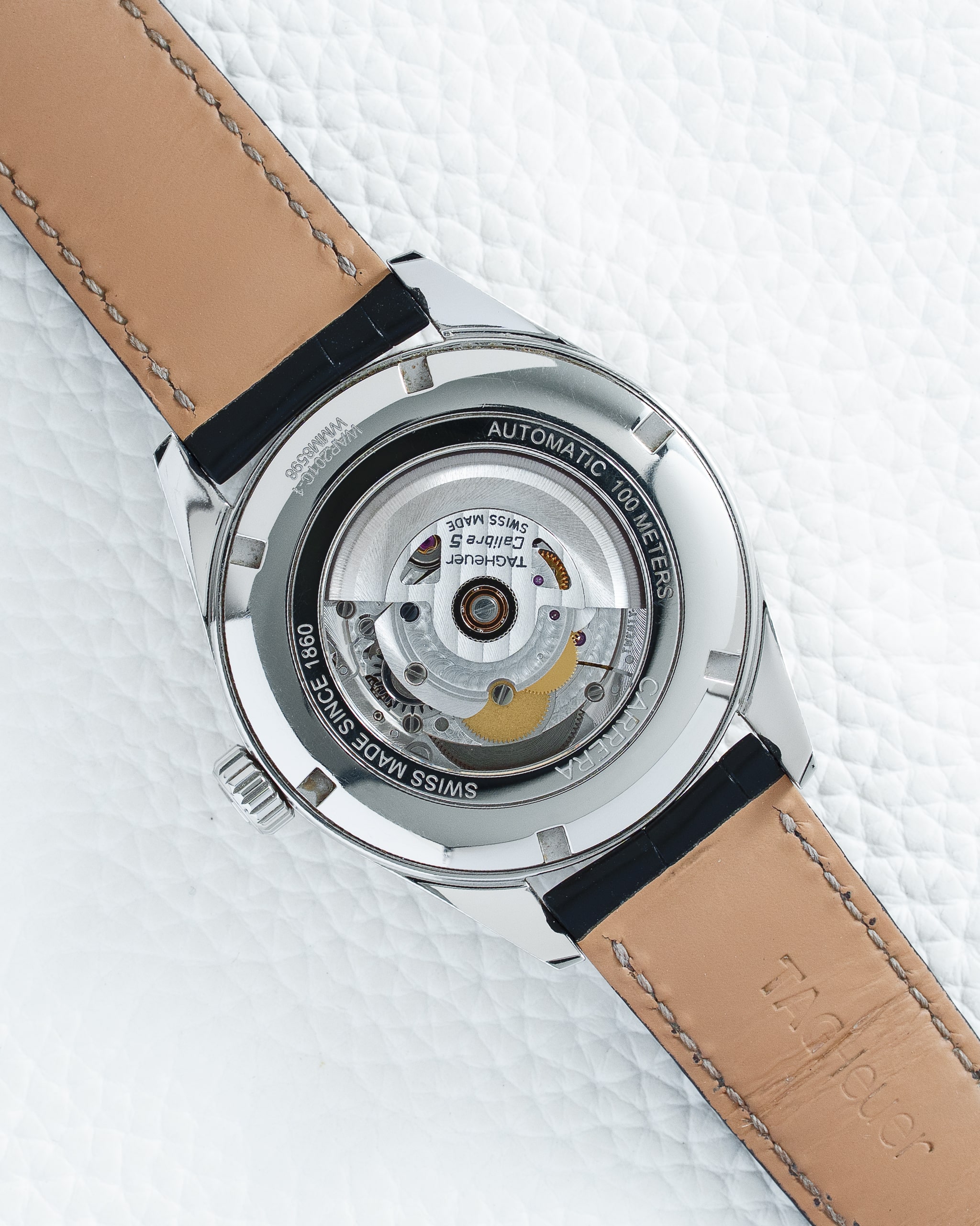 At its heart beats the reliable automatic Caliber 5, a workhorse Swiss movement based on the Sellita SW200-1, offering a 38-hour power reserve and a frequency of 28,800 vibrations per hour . The watch is presented on a black leather strap with a folding clasp and safety push-buttons, providing both comfort and security . Protected by a scratch-resistant sapphire crystal and equipped with a screw-down crown, the Carrera Calibre 5 offers a practical 100-meter water resistance . The caseback is engraved with the historic Carrera logo, a subtle nod to the collection’s rich racing heritage . This reference represents a perfect synthesis of timeless design, robust mechanical performance, and everyday versatility, making it an ideal choice for the discerning individual who demands a watch that is both a symbol of motorsport heritage and a reliable companion for any occasion .