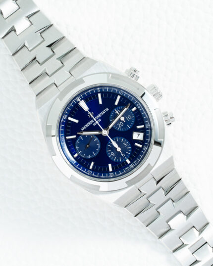 The Vacheron Constantin Overseas 5500V with its iconic blue dial and stainless steel construction represents the pinnacle of luxury sports watchmaking, blending the Maison’s 265 years