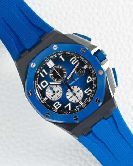 The Audemars Piguet Royal Oak Offshore 26480TI with its striking blue dial and titanium case represents the pinnacle of luxury sports watch engineering, blending avant-garde design