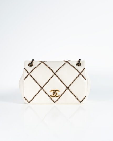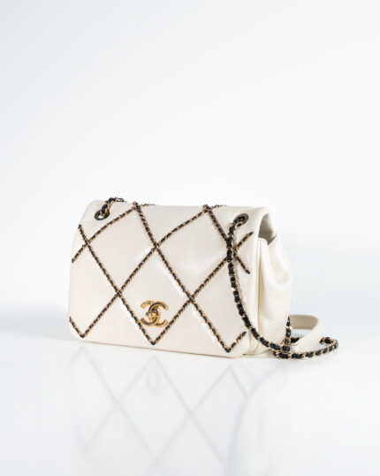 The Chanel Entwined Chain Stitch Bag in Ivory Lambskin is a breathtaking expression of artisanal craftsmanship and poetic design, representing a harmonious